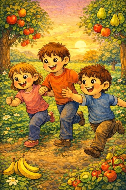 Φυτέψαν μια μηλιά. Έβαλαν και κερασιά. Την αχλαδιά λίγο πιο πέρα. Δέντρα γέμισε η αυλή. Χρώματα είχαν πολλά. Και τα φρούτα αμέτρητα.