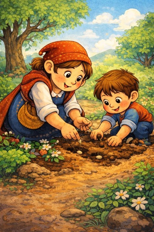 Έτσι και έγινε. Πριν ξημερώσει ήταν εκεί. Και δεν έβλεπε την ώρα να ξυπνήσει ο Σπόρος για να φυτέψουν μαζί τους σπόρους.