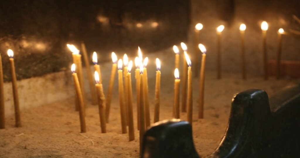Παράλληλα, η παρουσία των ανθρώπων στο εσωτερικό του ναού υπενθυμίζει ότι η πίστη δεν είναι ατομική υπόθεση. Είναι κοινότητα, σώμα, σχέση. Ο ναός γίνεται έτσι εικόνα της Εκκλησίας ως ζωντανής πραγματικότητας, όπου το παρελθόν, το παρόν και το μέλλον συνυπάρχουν λειτουργικά. Οι άγιοι των τοιχογραφιών, οι πιστοί που στέκονται προσευχόμενοι και το φως που απλώνεται παντού σχηματίζουν μια ενότητα που υπερβαίνει τον χρόνο.
