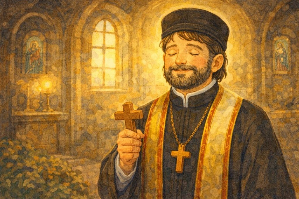 Διάλεξε, όμως, να γίνει αυτός ο ιερέας του χωριού, τώρα που ο παππα – Κώστας είχε πια γεράσει. Και με τη χάρη του Θεού, φώτιζε ο τυφλός παππάς τις ψυχές των ανθρώπων, που από πολλά μέρη πήγαιναν στο χωριό για να τους εξομολογήσει και να του ευλογήσει.