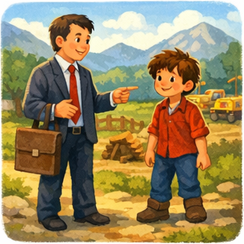 Πέρασαν μήνες. Και μια μέρα, που ο αέρας φύσαγε παράξενα, εμφανίστηκε στο μονοπάτι ένας άντρας με γυαλιστερά παπούτσια και χαρτοφύλακα. Ήταν εκπρόσωπος μιας μεγάλης εταιρίας. Χαμογέλασε πλατιά, όπως χαμογελούν οι βιτρίνες.