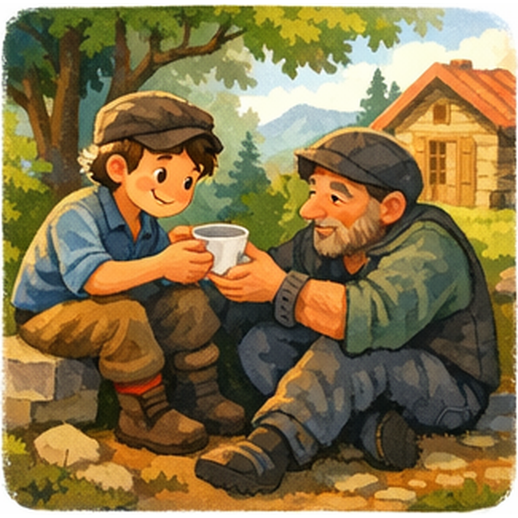 — Εγώ δεν παίρνω κανέναν. Όποιος έρχεται, έρχεται μόνος του. Κάθονται, μοιραζόμαστε ψωμί, ακούμε τον άνεμο. Μερικές φορές, λέμε λόγια που κάνουν την καρδιά πιο ελαφριά.