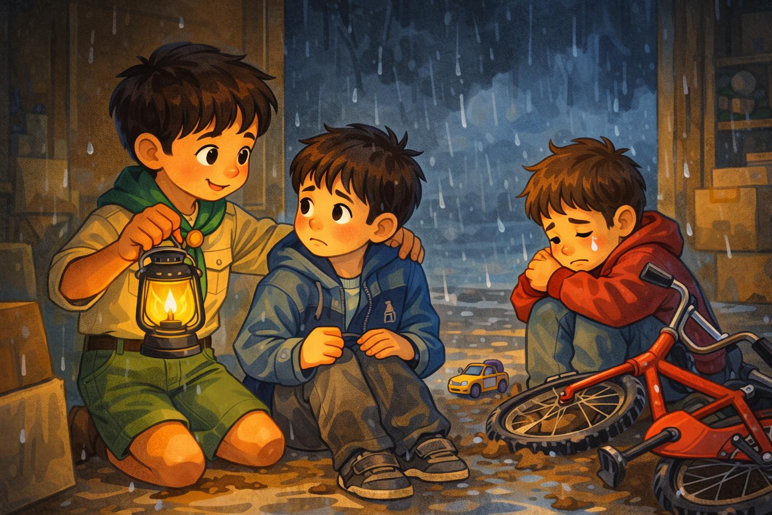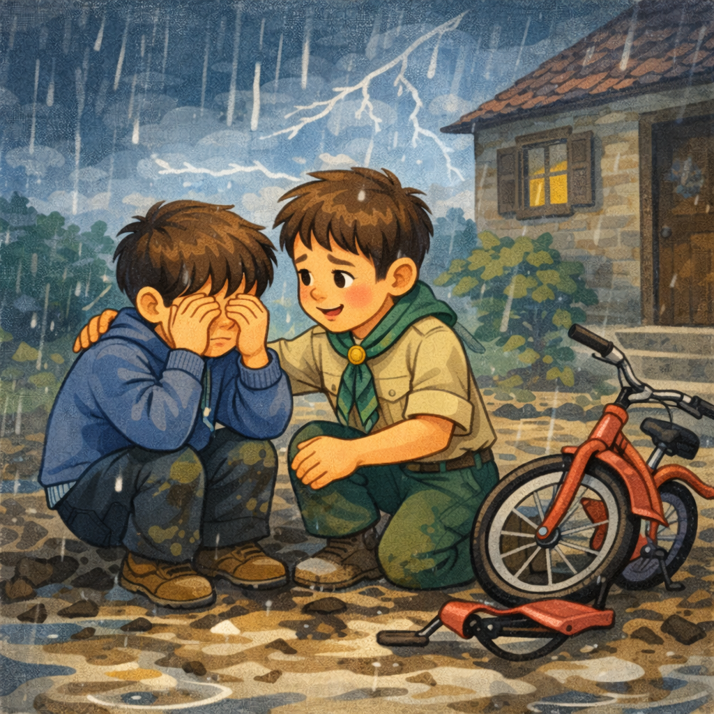 Μια φορά κι έναν καιρό, ήταν ένα παιδί γεμάτο καλοσύνη και μάτια που έλαμπαν από τη χαρά της προσφοράς. Ο μικρός Γεώργιος φορούσε πάντα το πράσινο του μαντήλι δεμένο με προσοχή γύρω από τον λαιμό. Ήταν προσκοπάκι από τότε που θυμόταν τον εαυτό του και ένιωθε πως αυτή η μικρή υπόσχεση που είχε δώσει μπροστά στους φίλους του και στον αρχηγό του ήταν κάτι πολύ σπουδαίο.